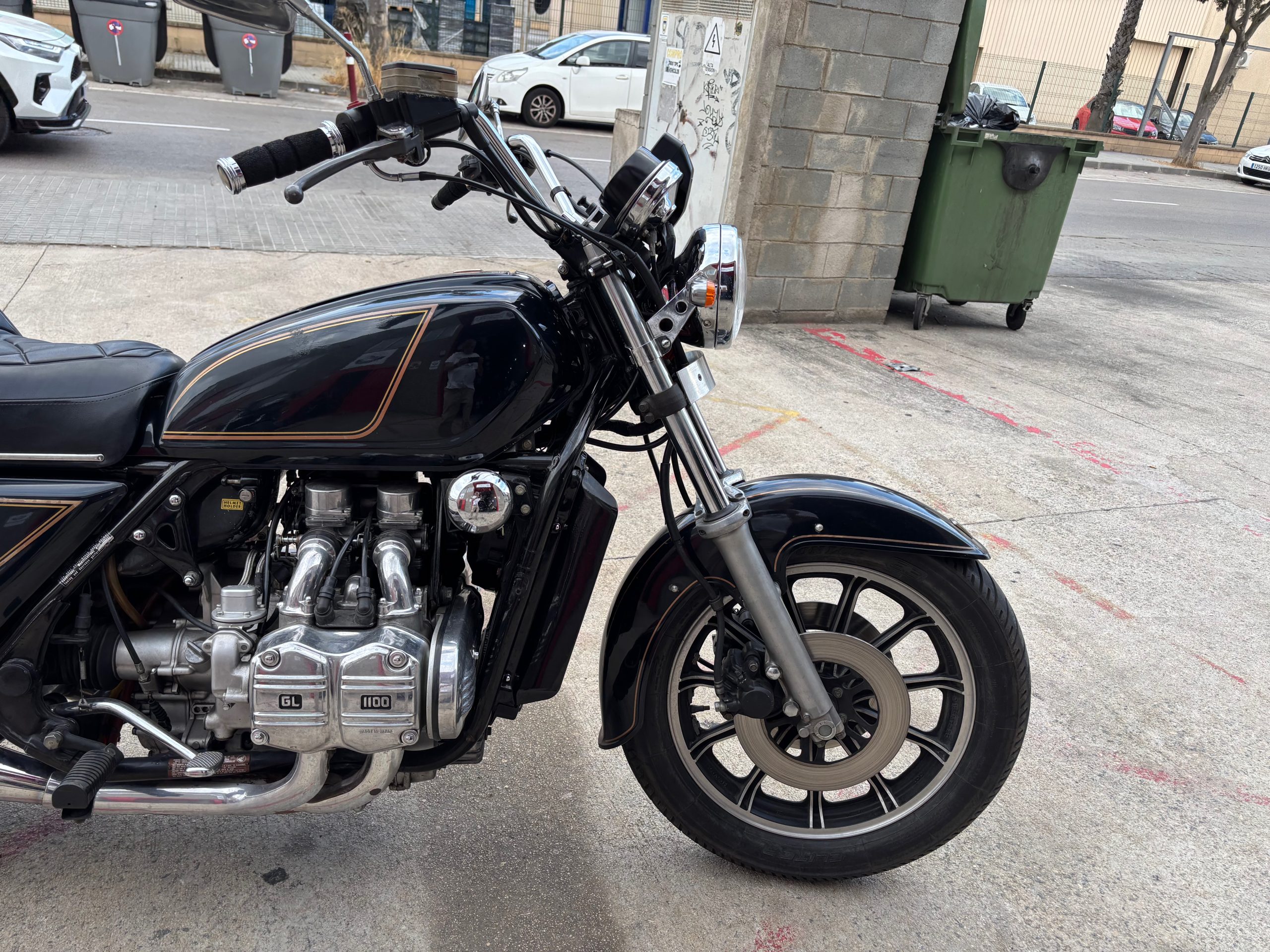 Vaya una clasica !. Una Goldwing de 45 años y que funciona como el primer dia. Cuatro cilindros y carburador, es decir sin “modernidades” electronicas . Estas motos van finas corren y son bonitas . Todavia mantiene el record Guiness de paises visitados en una vuelta al mundo que se hizo con este modelo.